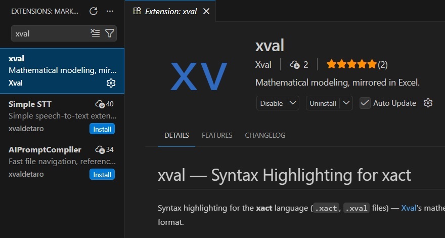 For xact language support in Visual Studio Code, install the xval extension by Xval.